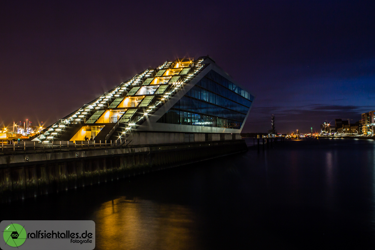 Es war mal wieder Zeit einen Freund in Hamburg zu besuchen und so war ich für einen Kurztrip dort. Leider blieb nur wenig Zeit zum fotografieren, aber so habe ich einen Grund erneut zurück zu kommen. 😉 Dieses Mal war ich zu später Stunde im Hamburger Hafen. Direkt am Anleger für die Kreuzfahrtschiffe hat man einen tollen Blick auf die Hafenkräne. Dort liegt auch das Dockland. Ein Bürogebäude, das einem Kreuzfahrtschiff nachempfunden wurde. Schon bei meinem ersten Besuch in Hamburg wollte ich dort fotografieren, aber damals reichte die Zeit auch nicht aus. Jetzt hat es endlich geklappt.
