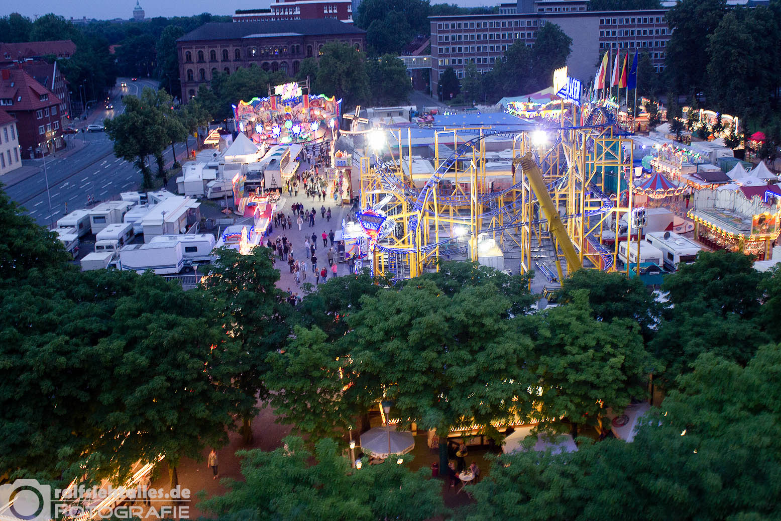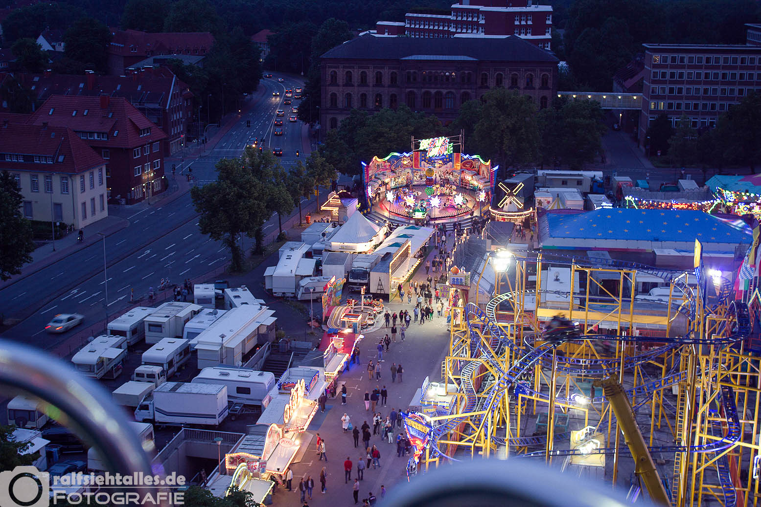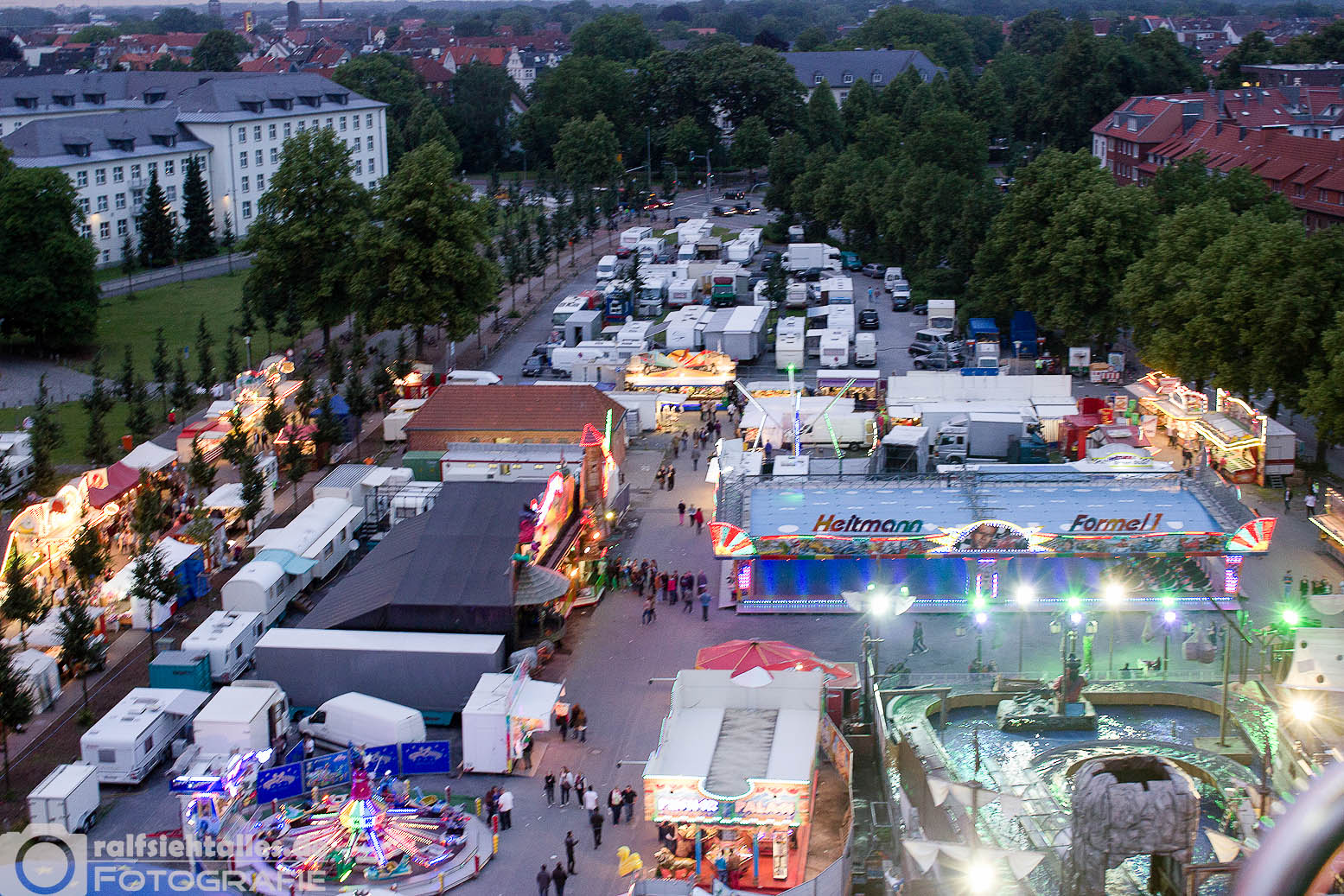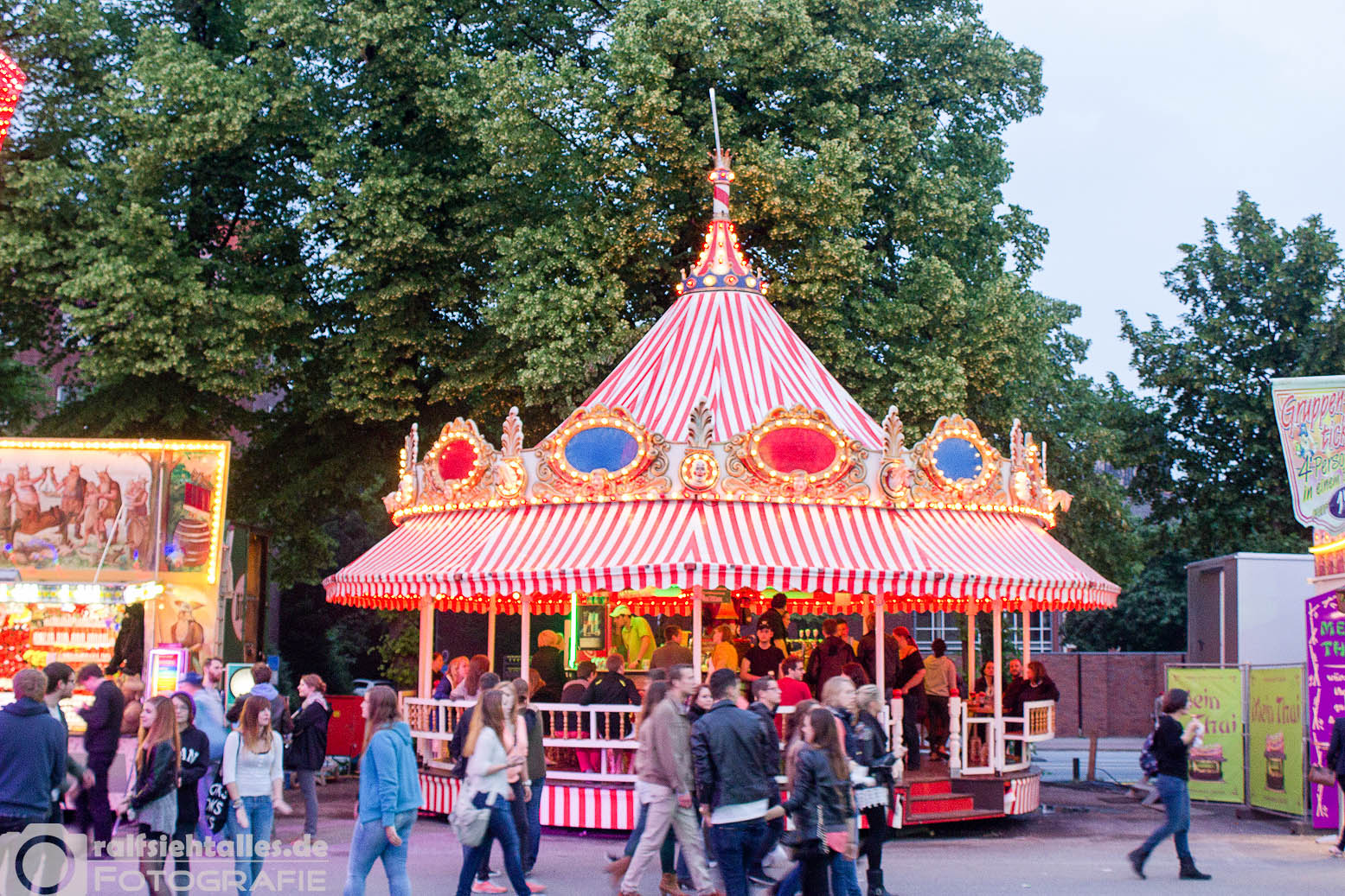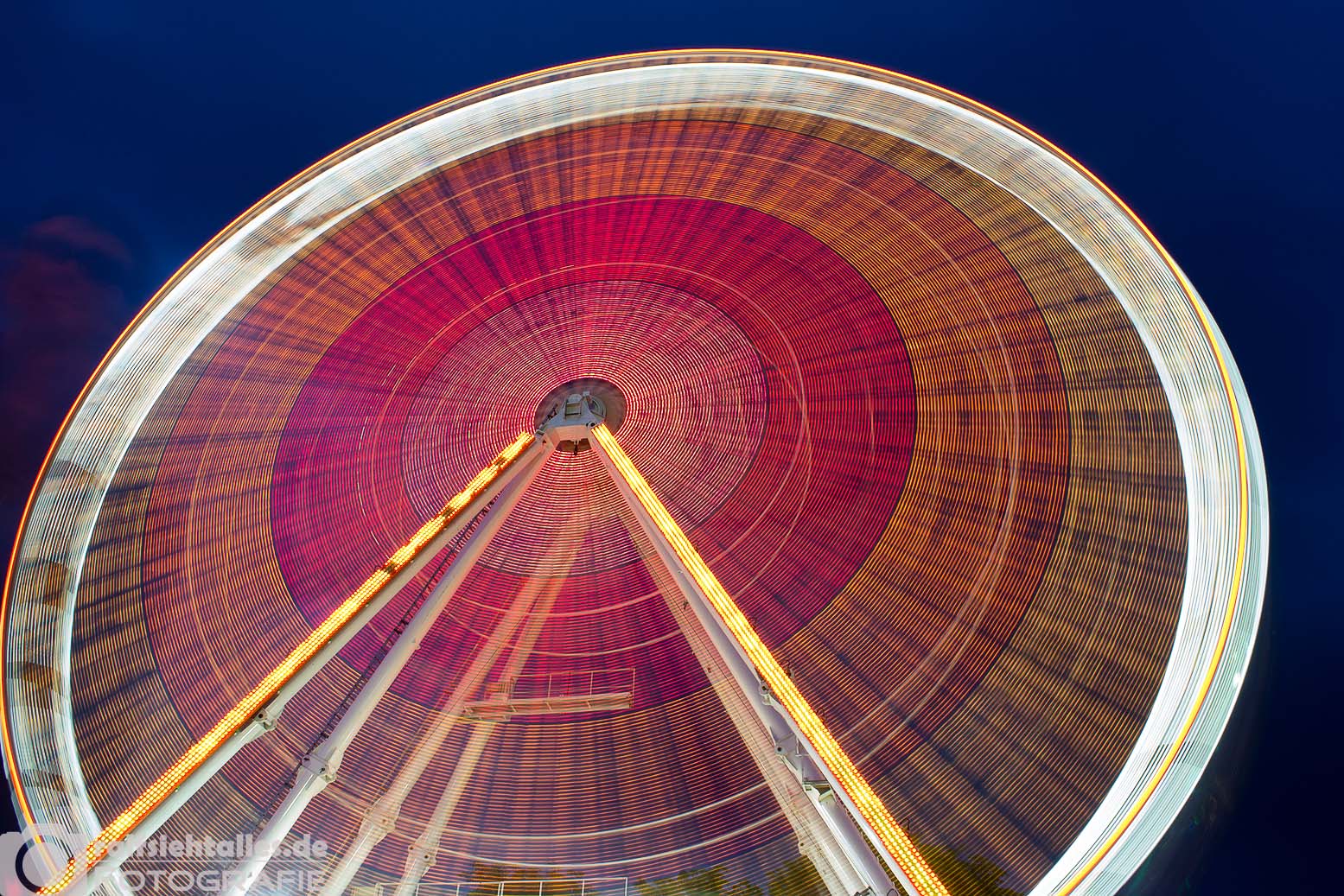 Der Send in Münster ist immer ein Ereignis, dass viele Menschen aus den Schlossplatz zieht. Die vielen bewegten und beleuchteten Karussells bieten eine gute Gelegenheit für ein paar Lichtzieheraufnahmen. Und aus dem Riesenrad lassen sich hervorragende Aufnahmen von der Stadt machen.